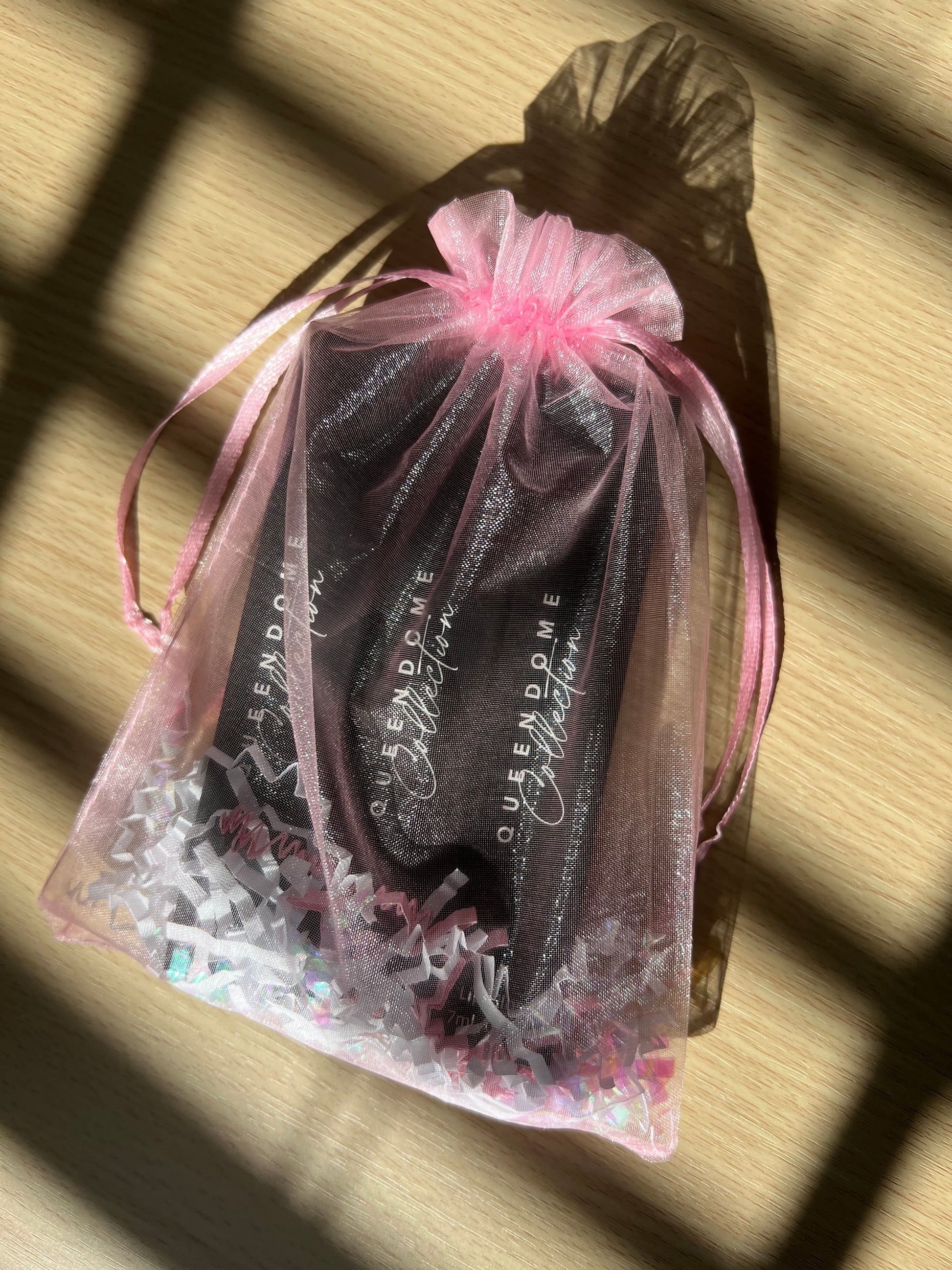 Three of our best-selling clear lip glosses, bundled in a light pink sheer organza gift bag. Choose either three wand tube styles, or three squeeze tube styles. Perfect for gifting, or just spoiling yourself because that's just as important!